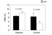 Methods: Nineteen male smokers were enrolled. After all participants smoked a cigarette, their endothelial function was assessed with brachial artery flow mediated dilation (FMD). An hour after the administration of aliskiren, they smoked again, their FMD was assessed again.